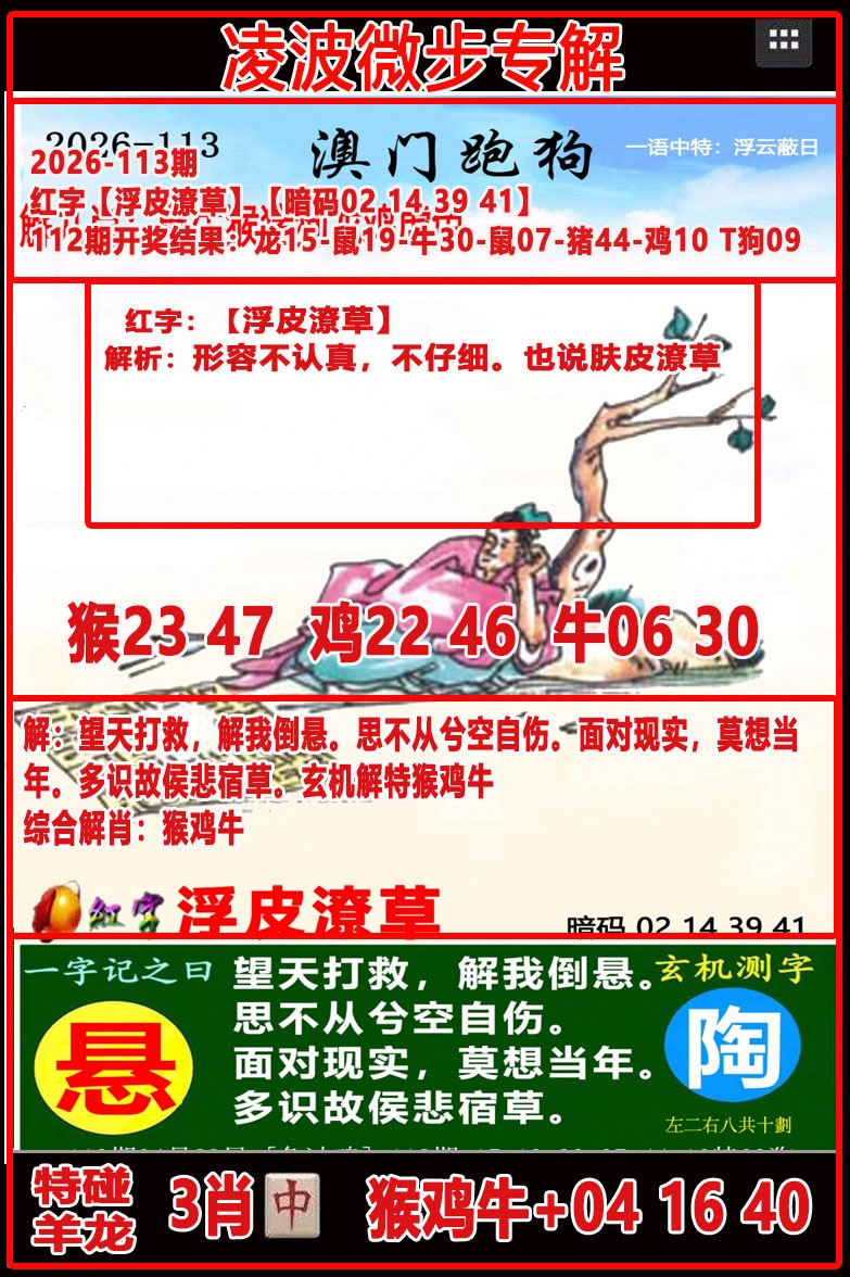 114期: 澳门六合彩 『仙人解码图』已更新